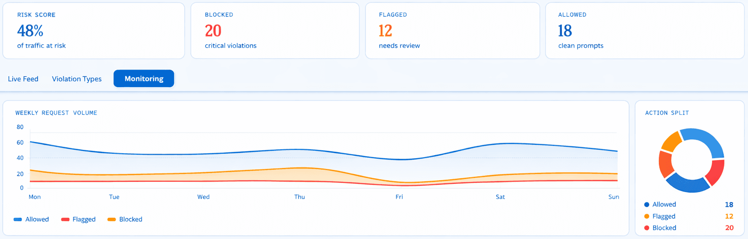 and detects when sensitive data reaches external models.